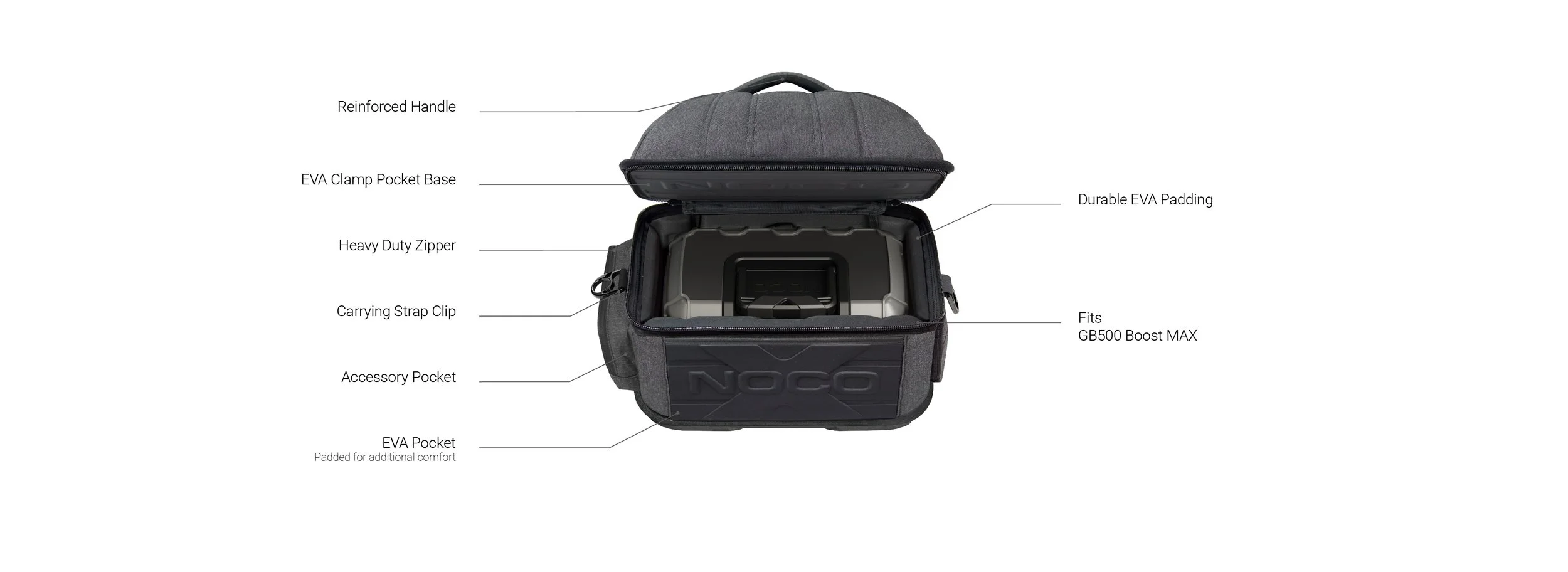 The NOCO Boost Max Carrying Cases are durable semi-rigid cases with a snug and secure fit to the NOCO Boost Max line up of industrial lithium jump starters. For the most demanding jump starting needs including mining equipment, fleet vehicles, and freight trucks, the Boost Max Carrying Cases comfortably take industrial jump starting where it was only an inconvenience. In a category that is filled with large and burdensome lead-acid jump starters we created a product line that only needed a couple bags.